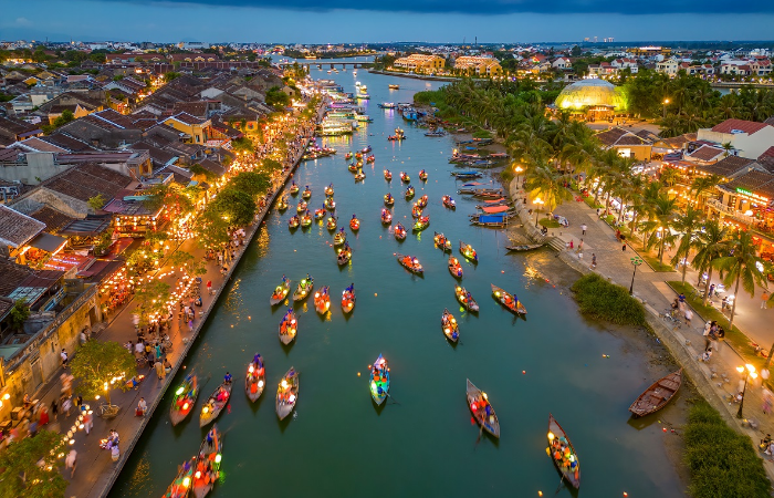 Hoi An destaca por su arquitectura bien conservada y calles iluminadas con farolillos. Además, es conocida por su atmósfera romántica, gastronomía local y talleres de artesanía. De este modo, esta ciudad combina belleza visual y riqueza cultural, consolidándose como un destino imprescindible.
