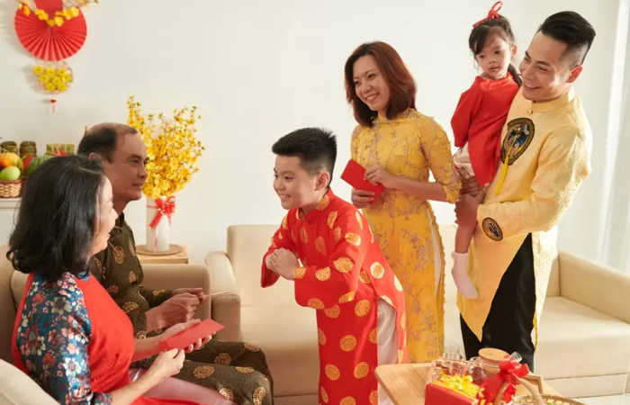 Dar dinero de la suerte en la festividad del Tet significa desearles a todos suerte, salud y fortuna. Por lo tanto, tanto quien recibe como quien da el sobre rojo recibirán cosas buenas en el nuevo año. Este dinero se guarda en un sobre llamado “lì xì”. El valor del dinero dentro del sobre no es lo más importante, sino el mensaje emocional que transmite: longevidad para los abuelos, crecimiento para los niños, éxito para los adultos.