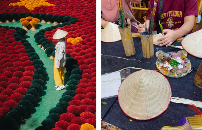 La experiencia estrella es aprender a teñir el bambú con los artesanos locales. Podrás caminar entre los “campos de incienso” para capturar fotos inolvidables en tu viaje a Vietnam privado. Además, este pueblo es famoso por sus sombreros de paja (non la). Podrás sentarte con las mujeres del pueblo para aprender a coser las hojas de palma con hilos invisibles. Es un encuentro único entre el color rojo de la suerte y el blanco puro de la tradición.