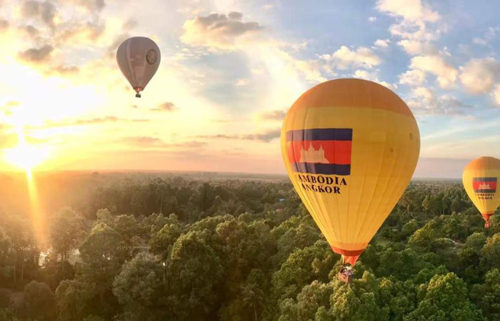 Contemplar el atardecer en globo aerostático sobre Angkor Wat