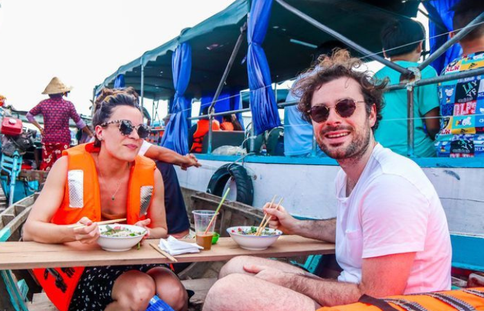 Desayunar en el mercado flotante de Cai Rang en el Delta del Mekong.