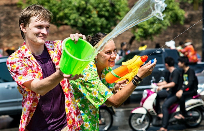 En esta ocasión, las principales calles de Bangkok, Chiang Mai, Pattaya y Phuket se convierten en gigantescas arenas acuáticas en las que participan miles de personas con pistolas de agua, cubos, vasos de agua e incluso fuentes de alta potencia. Independientemente de si eres un turista o un local, cualquiera puede ser atacado con agua, pero todo sucede con un espíritu divertido y amigable.