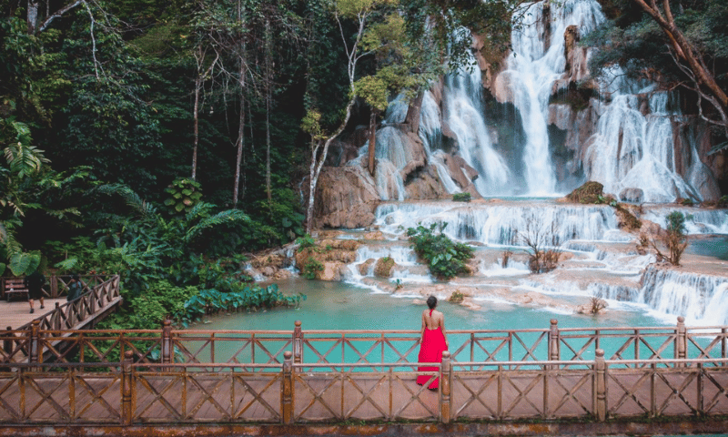 - Finalmente, vamos a la joya natural de Laos: la cascada de Kuang Si. Déjate hipnotizar por el agua turquesa que cae en cascada sobre formaciones de travertino, creando piscinas naturales perfectas para un baño refrescante.